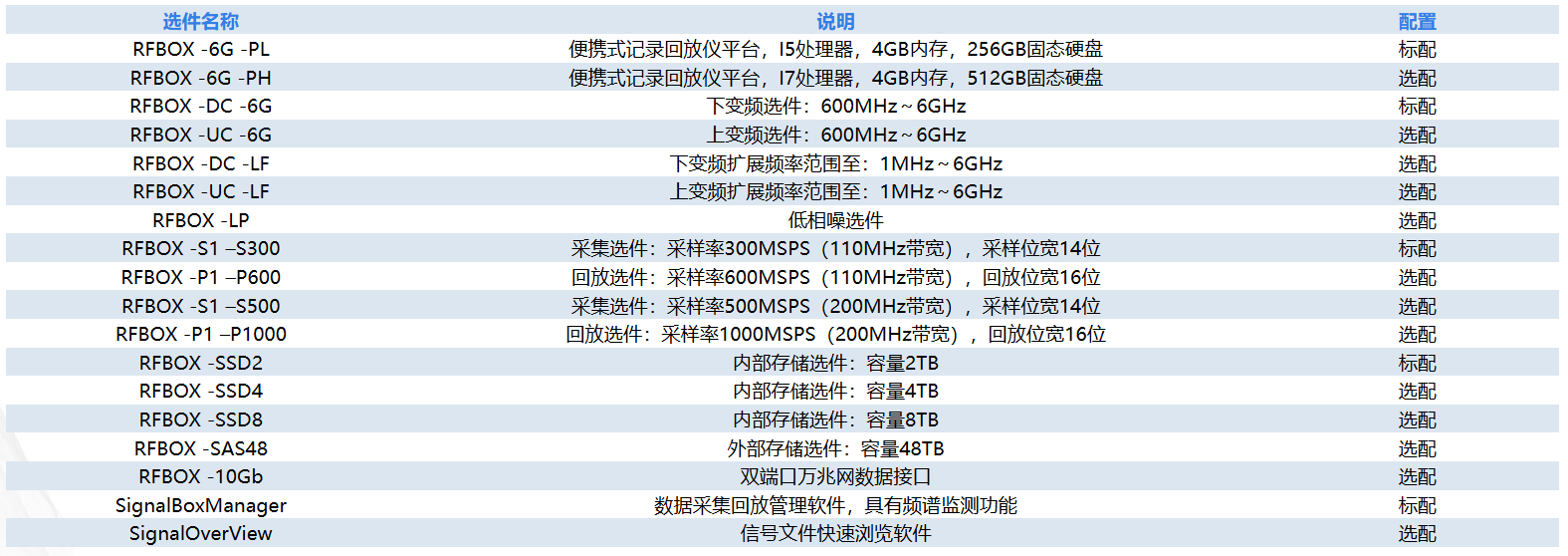 10.在不同的记录带宽时,记录时间可动态扩展,参见存储选件记录时间对照表